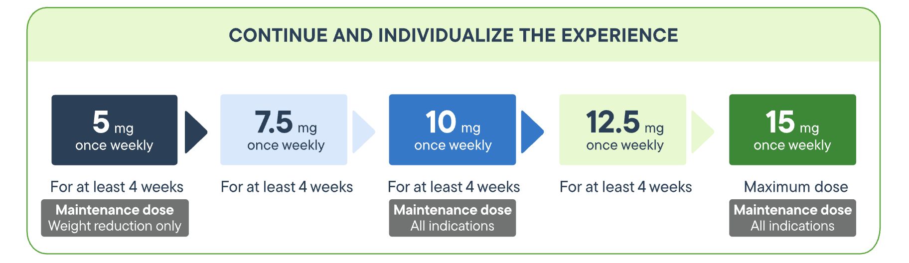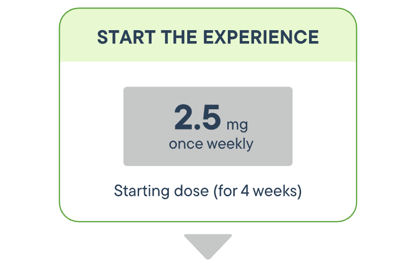 Exact dose starts at 2.5mg once weekly, then adjusted accordingly per patient